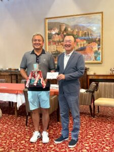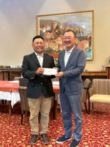 優勝と男子ベストグロスの齋木様(左)と、皆川会長(右)